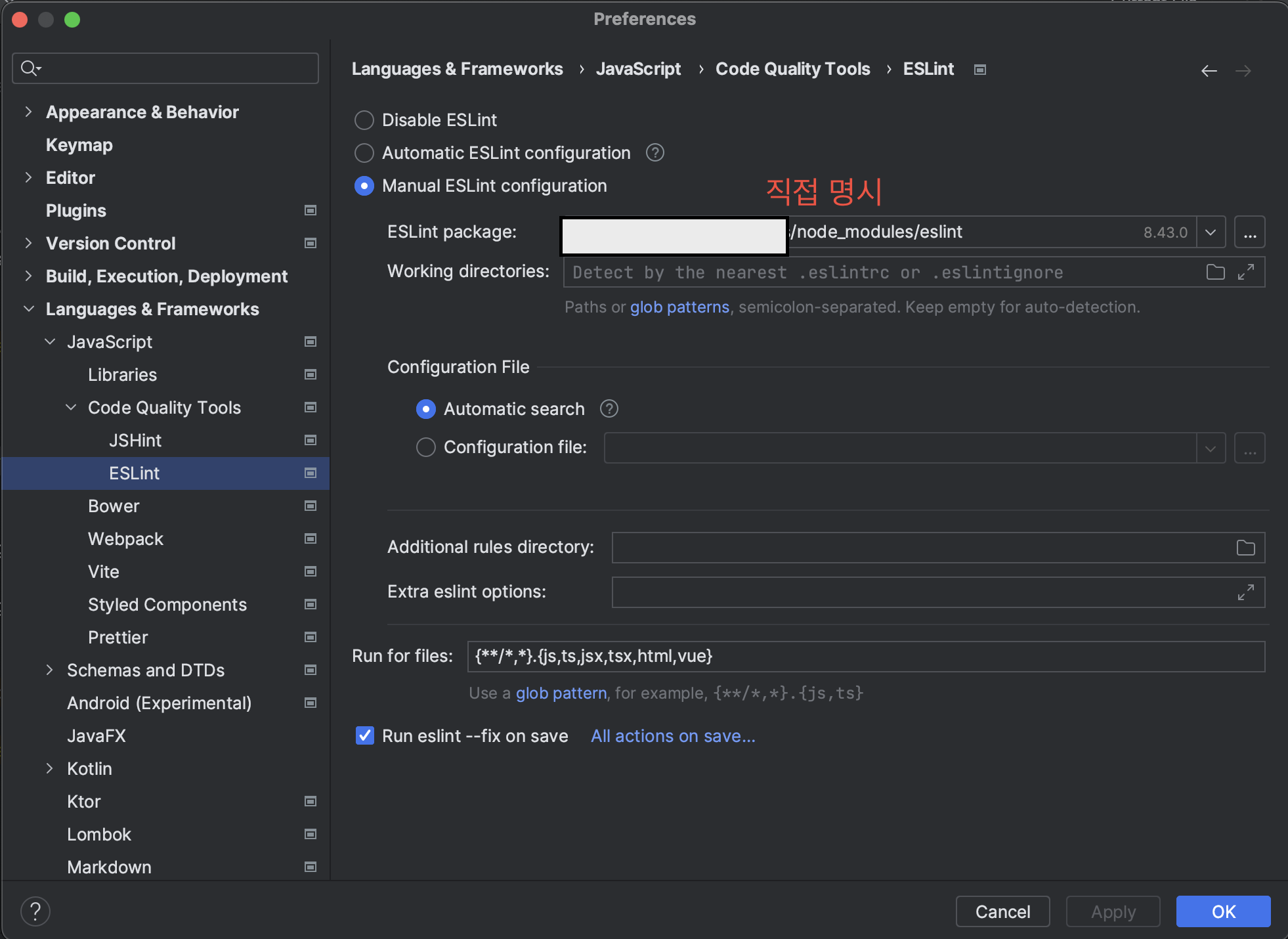 파일 저장할 때 ESLint 설정이 적용되게 하기