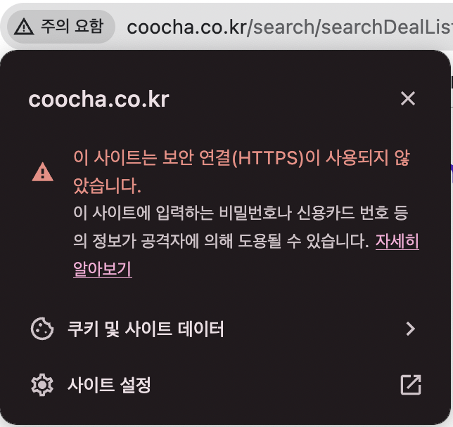 여담이지만... 크롬에서 강제적으로 HTTP 를 사용하는 사이트에 대해 위 그림과 같이 이 사이트는 보안연결이... 라는 문구를 띄우고 나서부터는 많은 사이트들이 부랴부랴 HTTPS 로 넘어갔다는 이야기가 있습니다.